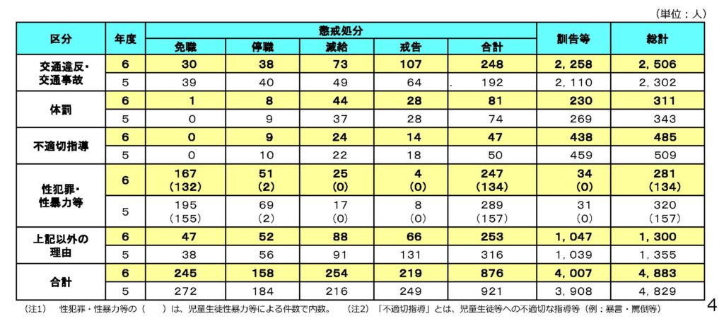教育職員の懲戒処分等の状況(令和6年度)