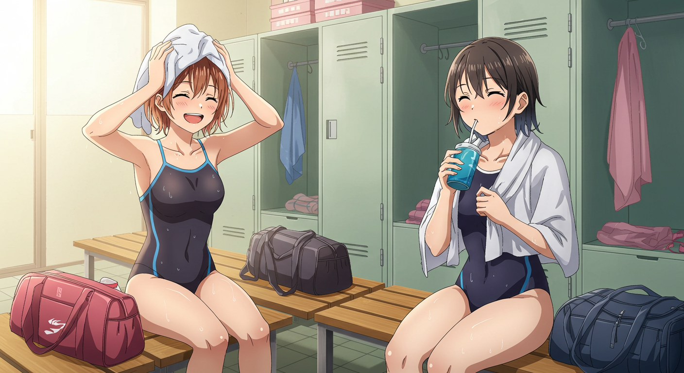 ・プールの更衣室で着替え中の女生徒をスマートフォンで盗撮
