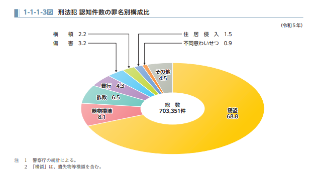 令和5年における刑法犯の認知件数の罪名別構成比は、以下のとおりです。
