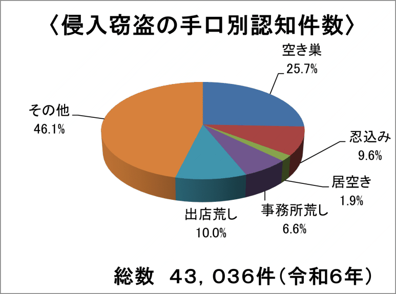 令和6年度(2024年)の「侵入窃盗」の認知件数は、4万3,036件です。
