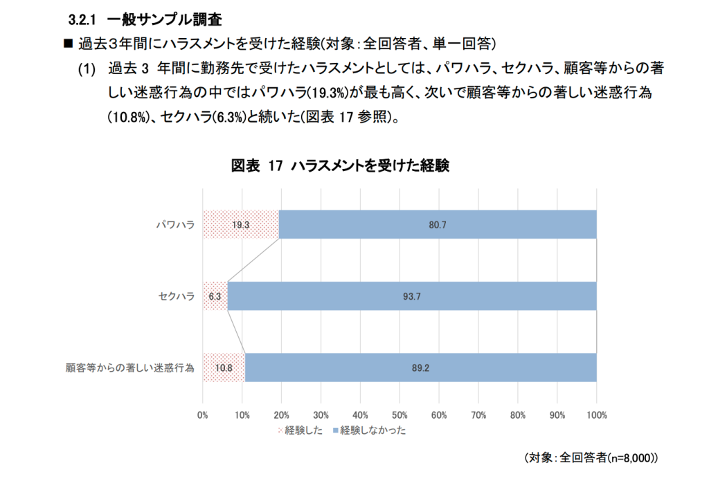 これは、職場内にパワハラを受けている人が「5人に1人はいる」計算になります。